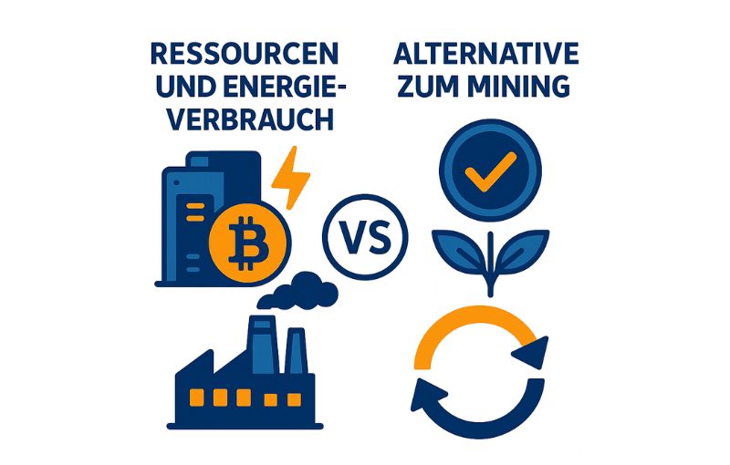 Es gibt alternative Konsensmechanismen, wie Proof-of-Stake (PoS), die weniger energieintensiv sind und von einigen neueren Kryptowährungen wie Ethereum (seit „The Merge“) verwendet werden.